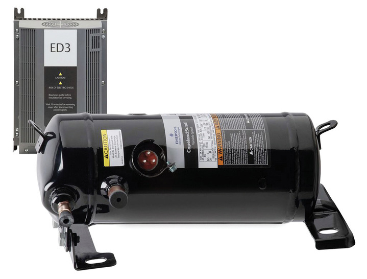Der drehzahlgeregelte, horizontale Copeland YBVH Scrollverdichter verfügt über einen bürstenlosen Permanentmagnetmotor und Frequenzumrichter. Die 500 g Kältemittelfüllmenge ermöglicht den Bau von Kühlregalen bis zu 3,75 Metern mit nur einem einzigen Kältekreis. Dies vereinfacht die Vitrinenkonstruktion mit weniger potenziellen Leckstellen. Die horizontale Bauweise des Verdichters bietet eine kompakte Lösung für die Installation des Kühlsystems entweder an der Ober- oder Unterseite der Vitrine. Die Drehzahlmodulation ermöglicht eine präzise Regelung der Kühlregaltemperatur und erbringt Energieeinsparungen von bis zu 19 % im Vergleich zur Scroll-Lösung mit fester Drehzahl für Mehrkreissysteme. Dies macht sie zu einer der effizienteren Lösungen auf dem Markt und ermöglicht die Entwicklung von Vitrinen mit sehr hohen Energieetiketten. Die parametrischen und programmierbaren Regler sind auf die Steuerung von drehzahlgeregelten Systemen zugeschnitten und gewährleisten eine optimale Energieleistung der Vitrinen. Der ECB-Pro Kühlregalregler ist das Herzstück und steuert alle Komponenten innerhalb ihrer Grenzen. Die Durchflussregler wie Expansionsventil, Druckmessumformer und Sicherheitsdruckschalter sind ebenfalls für Kohlenwasserstoffe ausgelegt, wobei alle Sicherheitsaspekte berücksichtigt und die Sicherheitsstandards eingehalten werden. All diese Merkmale ermöglichen es Einzelhändlern, die Energie- und Betriebskosten in ihren Geschäften zu senken. Die Copeland Produktpalette mit der R 290-Lösung kann sowohl für Anwendungen im mittleren Temperaturbereich mit einer Kühlleistung von 1 bis 8 kW als auch für Anwendungen im Niedrigtemperaturbereich mit einer Kühlleistung von bis zu 3 kW eingesetzt werden. Diese Produktpalette ist für die meisten Kühlregalkonstruktionen geeignet: für wasser- oder luftgekühlte Konstruktionen und solche mit oder ohne Türen. Die horizontale Lösung mit Propan wurde im Emerson Europe Solution Center als Prototyp und dann in Kühlregalen und in der Praxis bei verschiedenen Einzelhändlern in Europa getestet und geprüft und ist heute bereits in mehr als 3500 Anwendungen installiert.