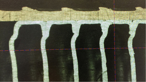 Die Bezeichnung Microgroove“ ist aus der Schallplattenindustrie entlehnt. Sie bezieht sich auf die engen Rillen von Langspielplatten, die Ende der 1940er-Jahre entwickelt wurden. Diese Microgrooves“ maßen an der Spitze nur 50 Micron (2 mils) oder weniger im Vergleich zu früheren gröberen Strukturen mit 150 Micron (6 mils) an der Spitze oder weniger [5, 6]. Die Bezeichnung Microgroove“ beschreibt daher die Oberflächenverbesserungen auf der Innenseite von Kupferrohren, die sich in einer ähnlichen Größenordnung abspielt [7].