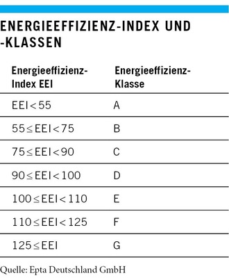 Der Durchschnitt aller zertifizierten Kühlmöbel liegt bei einem EEI von 90 bis 100. Dies entspricht der Energieeffizienz-Klasse D, die für einen mittleren Energieverbrauch steht.