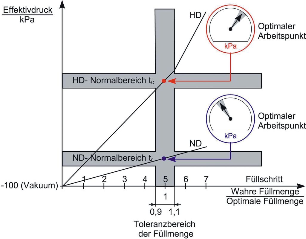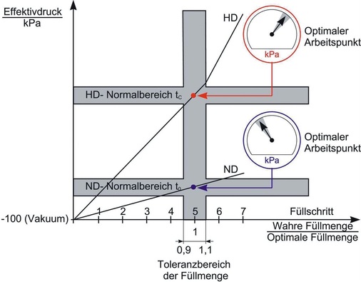 Ziel einer korrekten Befüllung muss also sein, die Anlage für die der Konstruktion zu Grunde liegenden Normalbedingungen optimal zu füllen.