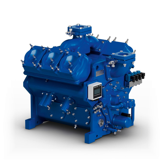 Die Kolbenverdichteraggregate Grasso V-Serie sind sowohl als einstufige als auch zweistufige Baureihen mit einem Fördervolumen von 218 bis 1991 m³/h verfügbar und wurden für industrielle Kühllösungen optimiert. Die Weiterentwicklungen umfassen eine robustere Bauweise, geringeren Platzbedarf und eine größere Anwendungsvielfalt. Die einstufigen Verdichtereinheiten sind in sieben Größen für Leistungsbereiche zwischen 150 und 900 kW erhältlich, die zweistufigen Modelle decken Leistungsbereiche von 50 bis 300 kW ab. Zusätzlich sind hocheffiziente Zwischenkühler für die zweistufigen Einheiten verfügbar. Auch der GEA Grasso V HP-Wärmepumpen-Kolbenverdichter, der Verflüssigungstemperaturen bis zu 72 °C erreicht, wurde auf die neue Generation umgestellt. Eine neue Lagertechnologie ermöglicht die Nutzung von standardmäßigem Kältemaschinenöl, was die Ölrückführung in Kälteanlagen vereinfacht. Die neue Serie zeichnet sich durch bis zu 25 Prozent niedrigere Wartungskosten aus, die durch verbesserte Materialien, optimiertes Design und weniger Bauteile erreicht werden. Zudem verlängern elektronisch gesteuerte Wartungsintervalle, überwacht durch den Maintenance Monitor und Omni, die Lebensdauer der Komponenten. Dank minimaler Ölverschleppung kann in vielen Fällen auf einen Ölabscheider verzichtet werden. Die zweite Generation der Grasso V-Serie bietet ein geschweißtes Verdichtergehäuse zur Temperaturtrennung und minimaler Ölmitförderung. Eine Zylinderkopfkühlung ist nicht erforderlich. Die Geräte sind für Drehzahlregelungen geeignet under verwenden Ammoniak (NH₃) als Kältemittel.