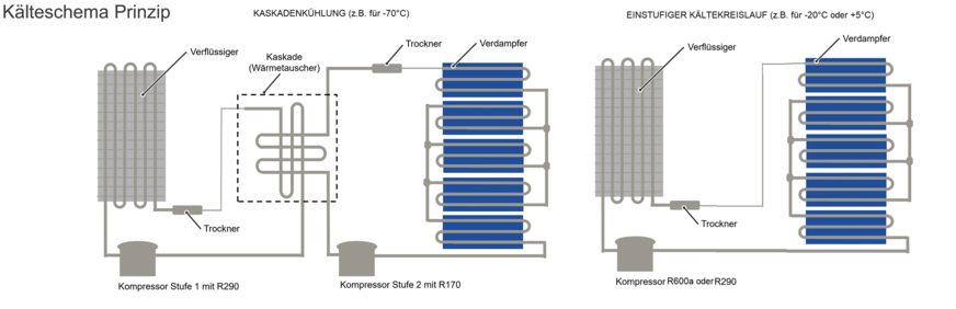 Um Temperaturen von bis -86 Grad Celsius zu erreichen, bedarf es eines speziellen Kühlsystems, das sich von normalen Kühlgeräten unterscheidet. Liebherr setzt in den Ultratiefkühlschränken ein besonders energiesparendes Kühlsystem ein, nämlich eine Kaskadenkühlung mit zwei Kältekreisläufen und umweltfreundlichen Kohlenwasserstoff-Kältemitteln R290 (Propan) und R170 (Ethan). Zusätzlich unterscheiden sich die Ultratiefkühlschränke des Herstellers auch bei der Isolation deutlich von Standardgefriergeräten: Es wird eine Sandwich-Konstruktion aus Vakuum- und Schaumisolation angewendet, um den Wärmeeintrag bei der Differenz von bis zu 120 K zwischen Lager- und Umgebungstemperatur so gering wie möglich zu halten.
