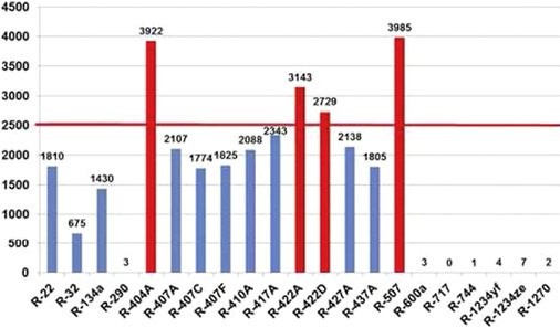 Der Einsatz von Kältemittel ist nicht nur aus wirtschaftlicher Sicht zu betrachten. Vielmehr bedarf der Einsatz aus ökologischer Sicht. Der Ausstieg konventioneller Kältemittel aufgrund der Umweltbelastung hat große Auswirkungen auf die Kälte- und Klimaanlagen. Dementsprechend soll der gesamte Beitrag der Kälteanlage des jeweiligen Kältemittels zum Treibhauseffekt gegenübergestellt werden. Jedoch werden hier anstatt der +15 °C Verflüssigung, die Sommerverhältnisse von +45 °C als Bezugspunkt genommen. Die Drücke steigen bei höherer Temperatur, somit wird der maximale TEWI-Wert ermittelt.