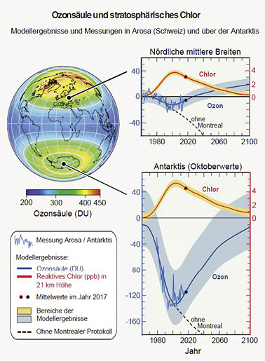 Obwohl durch das Montrealer Protokoll und den damit einhergehenden FCKW-Bann zwischen 1987 und 2017 Treibhausgasemissionen in Höhe von etwa 200 Mio. Tonnen an CO 2 -Äquivalent vermieden werden konnten, sei die Gefahr noch nicht gebannt, so die Autoren. Die Ozon-Regeneration brauche Zeit. Erst um das Jahr 2050 werde das Ozonloch“ wieder die Ozonmenge aufweisen wie in den 1980er-Jahren. Sonnencreme wird uns weiter ein wichtiger Begleiter sein“, resümieren die Autoren. 30 Jahre Montrealer Protokoll hätten jedoch bewirkt, dass die arktischen Ozonsäulen nicht weiter ins Bodenlose stürzen. Offensichtlich sei der 5-prozentige Rückgang der Ozonmenge gestoppt, so Thomas Peter und Johannes Stähelin.