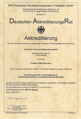 Das ILK Dresden ist langjährig als Prüfstelle für Kältemittelverdichter und akkreditiertes Prüflabor Wärmepumpe DAP-PL-4223.00 aktiv. Mehrere Prüfstände mit sehr geringer Messunsicherheit ermöglichen genormte Leistungsmessungen nach den Verdichterprüfnormen DIN EN 13771-1 und DIN EN 12900. Für eine Analyse der Kältemittelverdichter steht eine umfangreiche Datensammlung zur Verfügung. Diese basiert auf Messergebnissen von über 65 Hubkolbenverdichtertypen von zwölf Herstellern und über 25 Scrollverdichtertypen von sechs Herstellern.