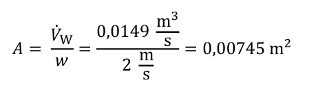 Mit der in der Praxis üblichen Strömungsgeschwindigkeit von 2 m/s ergibt sich die erforderliche Querschnittsfläche der Rohre A:
