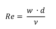 Mittels der Reynoldszahl ist eine Aussage möglich, ob eine Strömung turbulent ist. Sie stellt den Zusammenhang zwischen der Strömungsgeschwindigkeit, dem Rohrdurchmesser und der kinematischen Viskosität des Mediums (Kaltwasser) dar: