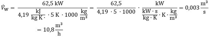 Bei einem Kältebedarf von z. B. 62,5 kW für die zehn Ölkühler und der erforderlichen Temperaturdifferenz von 5 K ergibt sich ein Volumenstrom V·W: