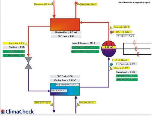 Nicht alle berechneten Anlagenkennwerte können in dieser kurzen Schilderung dargestellt werden. Je nach Berechnungsvorlage werden über 50 Betriebskenngrößen durch das ClimaCheck-System gemessen bzw. berechnet. Diese Werte von Betriebskenngrößen erlauben eine komplette Evaluation des Kältekreislaufes sowie einzelner Komponenten.