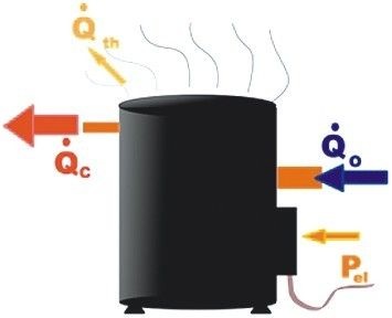 Für die Ermittlung des Kältemittelmassenstroms wird der Verdichter als Blackbox betrachtet. Über den angesaugten Kältemittelmassenstrom und die elektrische Antriebsenergie nimmt der Kompressor Energie auf. Die Energie, die in den Kompressor hineinfließt, muss den Verdichter auch wieder verlassen. Bei hermetischen und halbhermetischen Verdichtern erfolgt dies in der Regel nur auf zwei Wegen: über das verdichtete Kältemittel und als thermischer Verlust über das Gehäuse.
