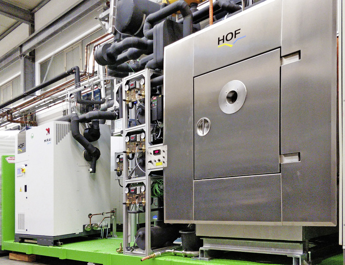 HOF Sonderanlagenbau hat die Kundenbedürfnisse verstanden und das Verfahren HOF-CryoBlizzard entwickelt. Dazu wurde ein Retrofit an einer unternehmenseigenen Gefriertrocknungsanlage aus dem Jahr 1998 durchgeführt. Dabei handelt es sich um einen Gefriertrockner mit einer Chargenkapazität von 40 kg für die Insulinherstellung. Die Kälteerzeugung wurde vor dem Retrofit durch zwei Kältesätze mit jeweils 12 kg des Kältemittels R 404 A (GWP 3922) realisiert. Steuerung der Prozessanlage erfolgte über eine Siemens S5.
