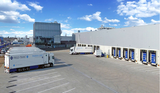Angesichts seines starken Wachstums entschied Frigo-Trans, seine Hauptgeschäftsstelle in das Gewerbegebiet von Fußgönheim zu verlagern. Das 30 400 m 2 große Baugelände umfasst nun ein Verwaltungsgebäude, eine Fahrzeugwerkstatt sowie ein 13 000 m 2 großes, mit modernster Technologie ausgestattetes Pharmacenter mit kontrollierter Kühlkette. Um diese zu erhalten, beauftragte Frigo-Trans Johnson Controls mit dem Bau einer Ammoniak (NH 3 )-Kälteanlage zur sicheren Einhaltung der Lager- und Versandtemperaturen innerhalb der Kühlkette des größten und modernsten Arzneimittellagers in Europa.