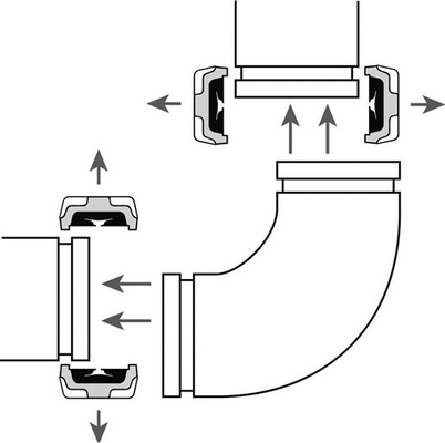 Genutete Rohrverbindungen bieten eine ausgezeichnete Lärm- und Vibrationsdämpfung und halten Rohrbiegungen, Expansion und Kontraktion über die gesamte Systemlebensdauer hinweg stand. Bei der Schalldämpfung kommt es nur darauf an, dass die drei flexiblen Kupplungen nahe bei einander und nahe der Vibrationsquelle platziert sind, das heißt, es ist noch genug Platz für Designflexibilität.