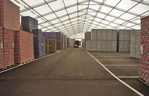 Für die Planung des temporären Chillstores lieferte der Lebensmittelhersteller umfangreiche Vorgaben: Er benötigte eine ganzjährig konstante Temperatur von 3 °C. Und brauchte zusätzlich angrenzend einen gekühlten Bereich, aus dem Lkws bei gesicherten Temperaturen laden konnten. Automatiktüren für die Ein- und Ausfahrt der Gabelstapler bildeten eine weitere Herausforderung. Außerdem musste man rund 100 Meter für die Stromversorgung überbrücken und eine entsprechende Verkabelung einplanen.