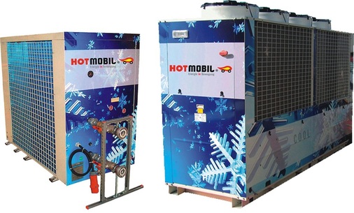 Mobile Heizzentralen zur Wärmeversorgung bei Anlagenausfällen und Umbauten prägten bisher das Angebot für mobile Energiedienstleistungen von Hotmobil. Als weitere Energieform fährt der Dienstleister nun auch mobile Kälte auf. Die Palette mobiler Kälteanlagen reicht vom Raumklimagerät mit 4 kW bis zum transportablen Groß-Kälteerzeuger mit 1000 kW Kälteleistung. Für den schnellen Einsatz bei Notfällen wurde das Kältemobil KM Cool 150 entwickelt. Die mobile Kältezentrale leistet 150 kW, ist betriebsbereit in einem Pkw-Anhänger eingebaut und wird mit diesem auch zum Einsatzort transportiert. Abwicklung, Service, Logistik sowie Anschluss und Inbetriebnahme erhält der Auftraggeber komplett aus einer Hand. Die Einsatzbeispiele für mobile Kältezentralen erstrecken sich von der Klimatisierung von Büros oder Veranstaltungsräumen mit kompakten Klimageräten bis zur Kühlung von Produktionshallen mit Groß-Kaltwassersätzen. -