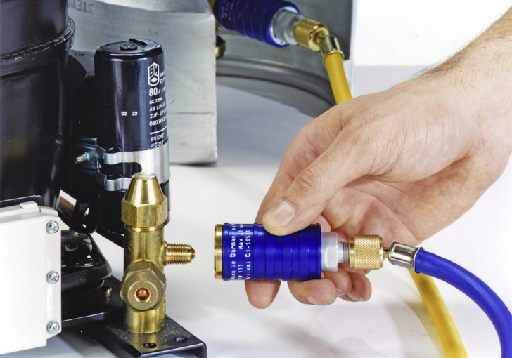 Neben der Befüllung und Evakuierung werden Adapter bei Druck- und Funktionsprüfungen von Komponenten wie Kühlschränken, Kühlsystemen, Klima- und Kälteanlagen, Kältearmaturen, Wärmeübertragern, Wärmepumpen, Druckbehältern und Kompressoren verwendet.