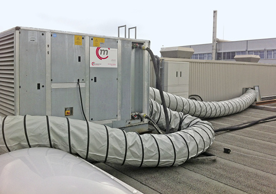 Ein gutes Beispiel für den Einsatz individueller Mietkälte bietet ein aktuell durchgeführtes Projekt bei einem großen Automobilzulieferer, der während der Sommermonate für ca. 16 Wochen die Kühlung seiner fünf Produktionshallen sicherstellen möchte. Trotz sehr kurzer Vorlaufzeit gelang es Mobil in Time die äußerst spezifischen Kundenbedürfnisse zu erfüllen.