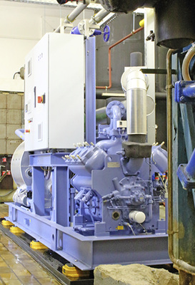 Die Installation der neuen Kältetechnik konnte während des laufenden Betriebs erfolgen. Zunächst wurde eine der beiden Nema-Kältemaschinen im Maschinenraum demontiert. An deren Stelle steht nun der bereits unter Laborbedingungen umfassend getestete GEA Grasso BluGenium 450. Lediglich vier Leitungen mussten zur Inbetriebnahme angeschweißt und die Elektroinstallation angepasst werden. Die gesamte Inbetriebnahme durch Weska wurde innerhalb von drei Wochen abgeschlossen und umfasste auch den Einbau von Sole-Pumpen, sowie die Einstellung der Regelungstechnik.