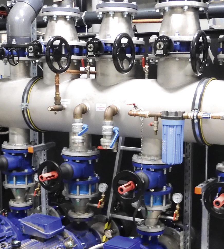 Die Bestandsaufnahme ergab: Die eigentlichen Kälteanlagen entsprechen, auch in die Zukunft gesehen, noch allen Anforderungen. Modernisierungsbedarf gab es im Kühlwasserkreislauf. Hier wurden die vorhandenen PE-Tanks mit neuen, vergrößerten Ansaugstutzen für die Verbraucherpumpen ausgestattet und ein neuer Druckverteiler mit niedrigerem Druckverlust installiert. Außerdem wurde die Werksverrohrung teilweise erneuert, um Druckverluste zu minimieren. Auch das Konzept der Kühlung wurde optimiert.