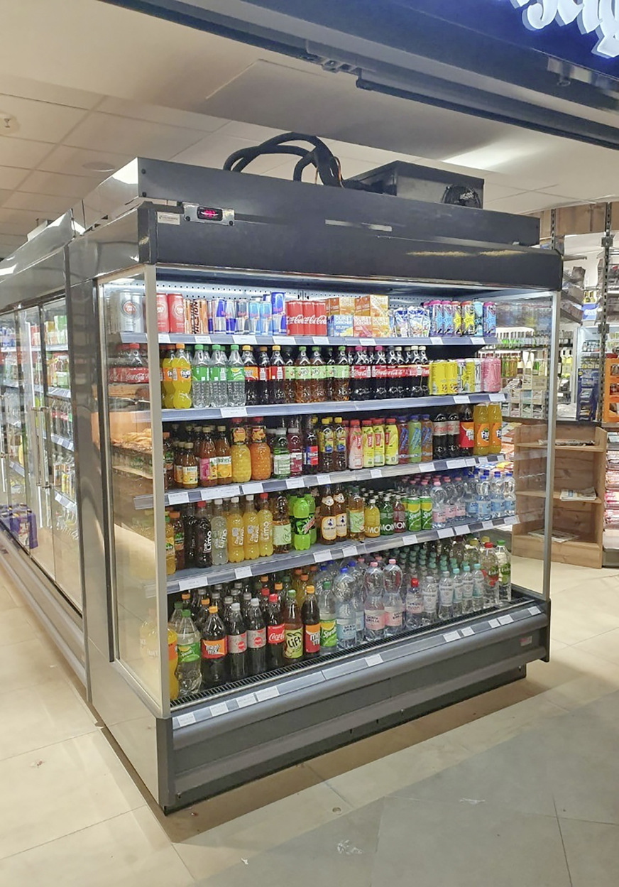 Die Hybridlösung von KMW basiert auf der Kombination von wassergekühlten Anlagen für die Tiefkühlung und dezentralen Hybridmodulen für dieNormalkühlung – der Anschluss an eine zentrale Kälteverbundanlage ist damit nicht mehr notwendig. Das ermöglichte es dem Markt-Betreiber, die Kühlmöbelausstattung trotz bestehendem Kälteverbundsystems sehr flexibel zu wählen und nach seinen Vorstellungen zu gestalten.