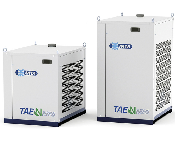 Die Prozesskühler der TAE - N Serie arbeiten mit hermetischen Rotationsverdichtern und sind mit nominellen Kälteleistungen von 1,7 bis 4,4 kW für die Innenaufstellung ausgelegt. Die Standard-Ausstattung umfasst einen Wasser- Bypass für kontinuierlichen Durchfluss und die Verdampfer-in-Tank-Konfiguration sorgt für Temperaturstabilität. Der Hydraulikkreis in eisenfreier Ausführung ermöglicht den Betrieb mit aggressiven Flüssigkeiten. Die Prozesskühler sind durch Eurovent zertifiziert und entsprechen den energetischen Anforderungen der ERP-Richtlinie nach Tier 2.