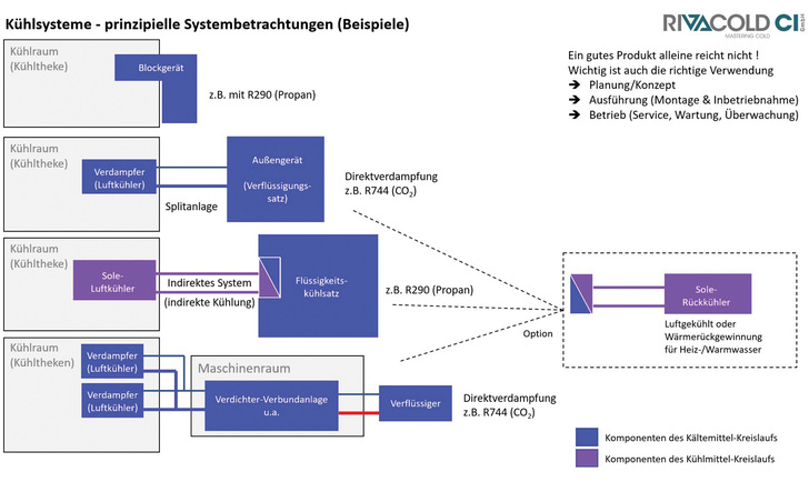 Zukunftssichere Kälteanlagen für Kühlmöbel oder für Kühlzellen und Kühlräume sind technisch ausgereift, ein breites Angebot an Komponenten und Systemen verfügbar. Sowohl für R 744, als auch für R 290 und andere Kältemittel mit niedrigem Treibhauspotential (Low-GWP). Dazu kommt, dass bei Kälteanlagen immer mehr Elektronik Einzug hält. Das Leistungsangebot geht bis hin zu modernen Fernwartungs- und Überwachungssystemen, oder auch APPs für die schnelle und einfache Kontrolle und Bedienung der Kälteanlagen direkt vor Ort über ein Smartphone. Langfristig geht die Tendenz hin zu natürlichen Kältemitteln und Kälteanlagen, die von Anlagenerstellern, Betreibern und dem Wartungspersonal rund um die Uhr überwacht und im Bedarfsfall Parameter-Anpassungen erfolgen können.