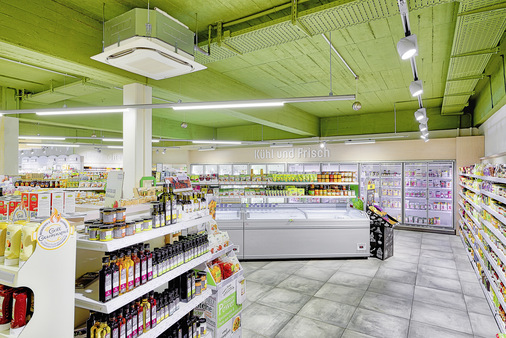 Besondere Herausforderung bei der Planung der Gebäudetechnik war deren Aufstellung. Aufgrund der Lage des Marktes in der dichtbewohnten Innenstadt von Warburg gab es hohe Anforderungen an den Schallschutz. „So haben wir sämtliche Kältetechnik im Inneren des Gebäudes, im neu geschaffenen Maschinenraum, aufgestellt. Zusätzlich wurden auch Schalldämpfer in die Maschinenraumbelüftung integriert. Der Vorteil ist, dass beide Systeme – Conveni-Pack und VRV – besonders kompakt sind und platzsparend aufgestellt werden können“, erklärt Franko Bitaris.