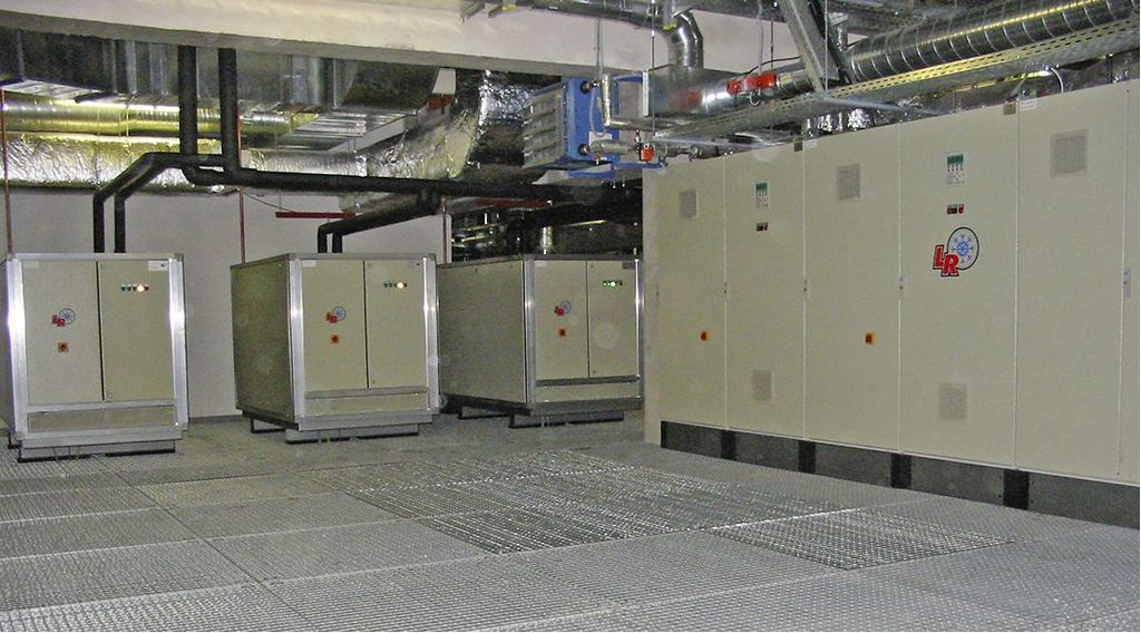 Die gesamte Anlage ist vollständig redundant aufgebaut . Die beidenKältemaschinen sind über eine übergeordnete Steuerung miteinander verbunden und arbeiten alternierend mit einer Grundlast-Wechselschaltung. Sollte eine Maschine ausfallen, übernimmt sofort die andere die Kälteversorgung der Tieftemperaturkammern. Während des Abtauens eines Luftwärmeübertragers wird der Wärmeeintrag durch das Zuschalten der zweiten Maschine kompensiert.