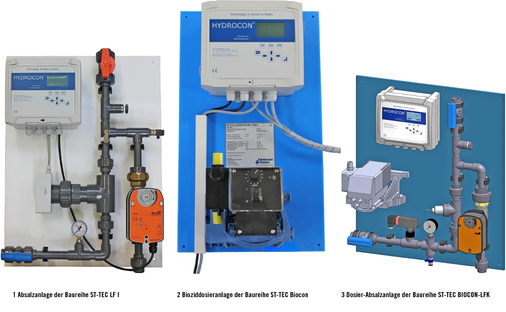 Bakterien können durch hohe Temperaturen abgetötet werden, eine Möglichkeit, die besonders in Trinkwassersystemen genutzt wird, um Legionellen zu bekämpfen. In Kühlsystemen ist dies aus ver-schiedenen Gründen fast nie ein Thema. Daher arbeitet man in offenen Rückkühlwerken in der Regel mit Desinfektionsmitteln, deren Wirksamkeit bekannt ist. Eine gezielte Desinfektion, wie sie bei erhöhten Keimzahlen und kritischen Legionellenkonzentrationen gefordert wird, ist aufwendig. Eine Vermeidung solcher Aktionen ist oft günstiger und in verschiedener Hinsicht sinnvoller – aber wie vermeidet man eine hohe Verkeimung und Besiedelung von Legionellen in Kühlturmkreisläufen? Stehen wirksame Biozide zur Verfügung, sollten diese in möglichst geringer Konzentration eingesetzt werden (Vorgabe der Abwasser-Richtlinien und der BiozidVerordnung). Um dieser Vorgabe gerecht zu werden, erfolgt nach VDI 2047-2 eine intelligente Biozid-Absalz-Regelung. Wird Biozid dosiert, darf nicht direkt oder kurzfristig später abgesalzt werden. Oder der Kühlturm ist aktuell nicht im Sprühmodus. Die Regelung schaltet für wenige Minuten die Berieselung ein, Biozid wird dosiert und nach einer gewissen Einwirkzeit wird die Besprühung des Kühlturms wieder abgestellt, eine Verkeimung durch Stillstandszeiten wird dadurch vermieden. Die Verordnung setzt voraus, dass die Kühlturmsysteme über Regelungen und Überwachungseinrichtungen verfügen, die aufeinander abgestimmt sind. Wir stellen Ihnen ein System vor, welches diese Vorgaben erfüllt. Darüber hinaus gibt es die Möglichkeit, bei diesem Verfahren viele Daten zu speichern und abzurufen. Ein Fakt, der bei der gewünschten Überwachung und deren Dokumentation eine wichtige Rolle spielt, besonders gegenüber den Behörden.