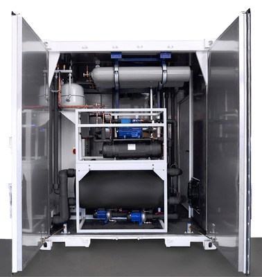 Die Anlagen dabei in einen Standardcontainer zu integrieren, hat sich bewährt. Das vereinfacht beispielsweise den Transport, da sich die fertiggestellten Systeme relativ einfach per Schiff, Zug oder Lkw zum finalen Einsatzort transportieren sowie im Bedarfsfall genauso schnell wieder abtransportieren lassen.