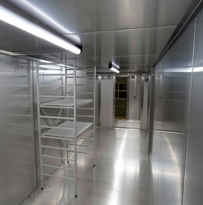 Eine Luftschleuse zwischen Umgebung und Tieftemperaturkammer wird auf − 20 °C gekühlt, was sowohl eine Entkopplung der Temperatur als auch eine Entfeuchtung der Luft bewirkt. Die Schleusenkühlung wird mit CO2 (R 744) als Kältemittel ausgeführt. Beide Maschinen – Lagerraumkühlung und Schleusenkühlung – sind wassergekühlt. Die Rückkühlung kann dabei entweder mit einem luftgekühlten Propan-Kaltwassersatz oder auch mit vorhandenem Kühlwasser erfolgen. Durch Verwendung ausschließlich natürlicher Kältemittel ist der Kunde nicht den Bestimmungen der F-Gase-Verordnung 517 / 2014 / EU unterworfen.