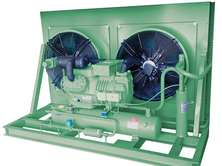 Der robuste luftgekühlte Verflüssigungssatz LH 265 E von Bitzer ist für hohe Umgebungstemperaturen und eine größere Kälteleistung vorgesehen. Er erreicht je nach eingesetztem Kältemittel eine Leistung von mehr als 40 kW in der Tiefkühlung. Auch bei sehr hohen Außentemperaturen besteht eine sichere Betriebsweise und die Kühlraumtemperatur wird konstant gehalten. Der Verflüssiger kann mit allen einstufigen 4-Zylinder-Verdichtern sowie mit ein- und zweistufigen 6-Zylinder-Hubkolbenverdichtern der Serie Ecoline des Herstellers ausgerüstet werden. Die einstufigen Geräte lassen sich mit einer Leistungsregelung ausrüsten. Die zweistufigen Verdichter können um Flüssigkeitsunterkühler ergänzt werden, wodurch sich ihre Kälteleistung und Effizienz steigern lässt. Der Verflüssiger ist mit Kältemitteln wie R 134 a, R 404 A, R 407 A und R 407 F kompatibel.