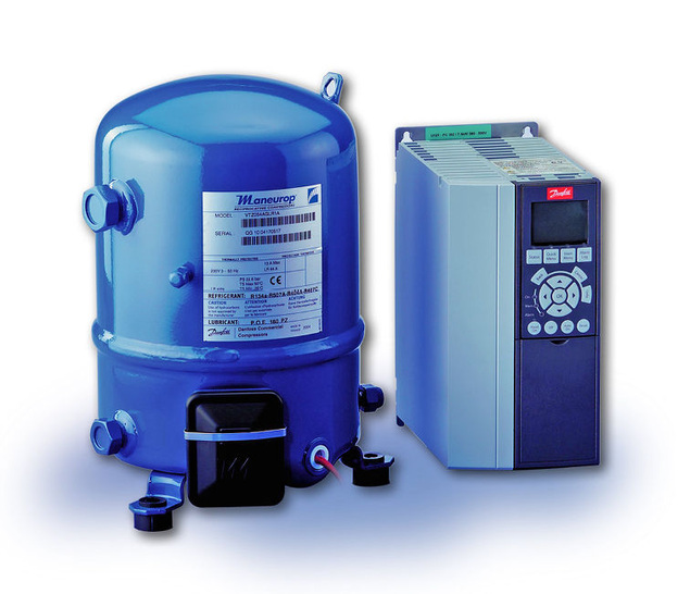 Die Lösung kam schließlich von IV Produkt AB: Nach vierjähriger Praxiserprobung beschloss das Unternehmen, sein Produktprogramm um eine neue Verdichtertechnik zu erweitern. Die Rede ist vom Maneurop VTZ mit dem passenden Frequenzumrichter CD 302. Eine neue Lüftungsanlage EcoCooler mit integrierter drehzahlgeregelter DX-Kühlung (DX = Direktexpansion = Trockenexpansion) wurde entwickelt,um jetzt noch erfolgreicher mit indirekten Systemen in Gestalt von luft- oder wassergekühlten Kaltwassersätzen konkurrieren zu können, und zwar nicht nur hinsichtlich Platzbedarf, Preis, präziser Temperaturregelung usw., sondern vor allem mit einem beträchtlich höheren COP. Diese Eigenschaften verdankt die Anlage ihren frequenzgeregelten Zu-, Abluft- und Verflüssigerventilatoren und dem VTZ-Verdichter, der zwischen 30 Hz (1 800 U/min) und 90 Hz(5 400 U/min) betrieben wird. Es treten keinerlei Leistungsverluste in irgendwelchen externen Wärmeübertragern auf und es gibt weder Pumpen noch 3-Wege-Ventile oder Verflüssiger-/Trockenkühlerlüfter, deren Bauteile sich häufig als echte Energiefresser erweisen.