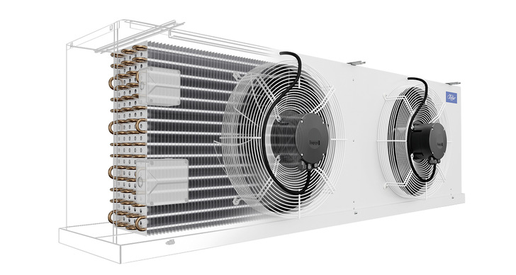 Die gewerblichen Luftkühler aus der Serie FHV / T lassen sich variabel mit einem bis sechs Ventilatoren in den Durchmessern 250, 300, 450 mm, unterschiedlichen Lamellen - Geometrien, Materialkombinationen und Zubehören in der Länge und Höhe konfigurieren. Neu ist die zusätzliche Variabilität von vier oder sechs Rohrreihen in der Blocktiefe bei den größeren Typen mit einem bis drei Ventilatoren und mit 450 mm Durchmesser. Für diese können Lamellenabstände von vier und sieben Millmetern bei HFC und Sole und vier, sieben und 12 Millimetern bei CO2- Anwendungen angeboten werden. Bei den CO2 - Verdampfern beträgt der maximal zulässige Druck PS 80 bar. Um die Abtausicherheit zu gewährleisten, wird bei den Geräten mit sechs Rohrreihen für Tiefkühlanwendungen ein fünfter Heizstab in den Block eingesetzt.