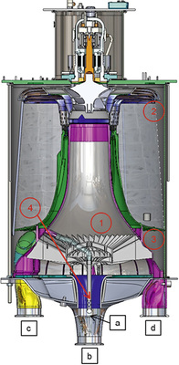 2. Der ct-turbo: Der Wasserdampf wird von dem Turboverdichter mit bis zu 90 000 U/min. verdichtet, wobei sich Druck und Temperatur des Dampfes erhöhen.