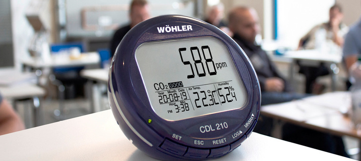 Das CDL 210 misst den CO2-Gehalt, die Temperatur sowie die Feuchte der Innenluft und gibt auf dieser Grundlage eine Beurteilung der Raumluftqualität gemäß VDI 6022 Teil 3. In dem Display werden sowohl die Messdaten als auch die Bewertung angezeigt: optimal, normal, kritisch. Eine schlechte Bewertung der Raumluft zeigt, dass kein ausreichender Luftaustausch gegeben ist, so dass auch eine eventuell vorhandene Virenlast im kritischen Bereich liegt.