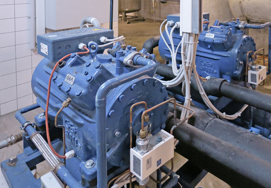 Damit dieser Prozess stets stattfinden kann, hat Anlagenbauer Mathias Richard Stefek in Wien eine Zweikreis-Anlage mit zwei Verdichtern des Typs GEA Bock HGX44e für synthetische Kältemittel umgesetzt. Jeder dieser Verdichter bietet ein Hubvolumen von 41,3 m³h (bei 50-Hz-Betrieb). Für die Wahl der Verdichter sprach die positive Erfahrung des Anlagenbauers mit dem Fabrikat. „Wir haben in den vergangenen Jahren etliche Bock-Verdichter installiert und betreuen sie im Service“, sagt er und hebt auch die Laufruhe der Verdichter hervor.
