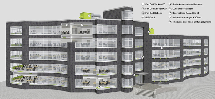 Klimatechnik © premero Immobilien GmbH Nordport Plaza Hotel Hamburg: Gebäudetechnik auf neuem Niveau Elegante Effizienz 02.11.2018 - Nordisch nobel und schwäbisch sparsam: So kann man die Eigenschaften des Nordport Plaza Hotel im Norden Hamburgs beschreiben. In Sichtweite des Flughafens der Hansestadt hat das weltweit einzigartige 4 Sterne plus Hotel neu eröffnet – herausragend in Architektur, Ausstattung und Energiekonzeption. Das Hotel verfügt neben einem außergewöhnlichen Erscheinungsbild auch über ein einzigartiges Energiekonzept, das auf erneuerbaren Energien beruht und somit gleichermaßen die Umwelt schont sowie einen wirtschaftlichen Betrieb der Anlagen garantiert. Jens Gaigalat, Thorsten Schütte, Hamburg © Mitsubishi VRF-Technik mit Wärmerückgewinnung sichert niedrige Betriebskosten Mal warm, mal kalt 02.11.2018 - Hochwertige Bürogebäude zeichnen sich unter anderem durch hohen Komfort bei gleichzeitig niedrigem Energiebedarf aus. Der Neubau am Liboriberg in Paderborn ist ein Beispiel dafür. Die Räume werden mittels moderner, effizienter VRF-Technik mit integrierter Wärmerück-gewinnung klimatisiert. Das gewählte VRF- / WR 2-System City Multi von Mitsubishi Electric ermöglicht dabei das simultane Heizen und Kühlen. Monika Verspohl, Haltern am See © Claus Födisch / SEGRO Lagerhalle an individuelle Klima-Bedürfnisse angepasst Kühle süße Sünden 10.10.2018 - Beim Bau von Logistikhallen ist eine günstige und schnelle Fertigstellung oftmals essenziell. Berücksichtigt werden muss auch, dass die Bedürfnisse des künftigen Mieters bei der Planung noch nicht bekannt sind. So muss die Halle in Standardausführung errichtet und hinterher den jeweiligen Mieteranforderungen flexibel und schnell angepasst werden können. Wie dies effizient umgesetzt werden kann, zeigen der Bau und die klimatechnische Ausstattung des SEGRO Logistics Parks Bischofsheim. Gerold Freitag, München © Remko Möglichkeiten und Rahmenbedingungen bei Raumklimasystemen Klimatisierung notwendig? 07.09.2018 - Raumklimageräte gelten heute nicht mehr als Luxusartikel, sondern werden bei Neubauprojekten als Standard zur komfortablen und effizienten Gebäudeklimatisierung eingeplant. Für jede Wohn- bzw. Gebäudesituation bieten Hersteller zahlreiche Optionen. Insbesondere durch Multisplit- und VRF-Systeme lassen sich die vielfältigen Anforderungen an die Klimatisierung exakt umsetzen. Marco Beining, Lage © Kampmann Komfortklimatisierung von Büro-/Verwaltungsgebäuden sowie Hotels Bedarfsgerecht für alle Raumnutzungen 09.07.2018 - Als Systemanbieter für Lüftungs- und Klimatechnik erstellt Kampmann ganzheitliche Lösungen, die speziell auf moderne Büro- und Verwaltungsgebäude sowie Hotels zugeschnitten sind. Um eine bedarfsorientierte und energieeffiziente Betriebsweise zu gewährleisten, werden zur Sicherstellung einer hohen Luftqualität die zentralen RLT-Geräte von Nova eingesetzt. Die Abfuhr der Wärme- und Kühllasten erfolgt hingegen über wasserführende Komponenten. © Mitsubishi Electric Ahauser Club mit energiesparender Klimatechnik setzt auf Wärmepumpen Warm und kalt ganz nach Wahl 11.05.2018 - Die Klimatisierung von Veranstaltungszentren stellt hohe Anforderungen an das jeweilige Klima-Lüftungskonzept. Zum einen sollen kontinuierlich große Mengen konditionierter Frischluft zugeführt werden, zum anderen müssen niedrige Betriebskosten und eine absolute Betriebs-sicherheit gewährleistet sein. Im Club Next in Ahaus ist dies gelungen. Energiesparende Klimasysteme mit Wärmepumpenfunktion versorgen die Lüftungsanlage mit Wärme und Kälte. Zusätzlich konditionieren dezentrale Klimaanlagen als Single- oder Multisplitsysteme die Raumluft in ausgewählten Bereichen bei Spitzenlast. Wolf-Werner Januschek, Düsseldorf