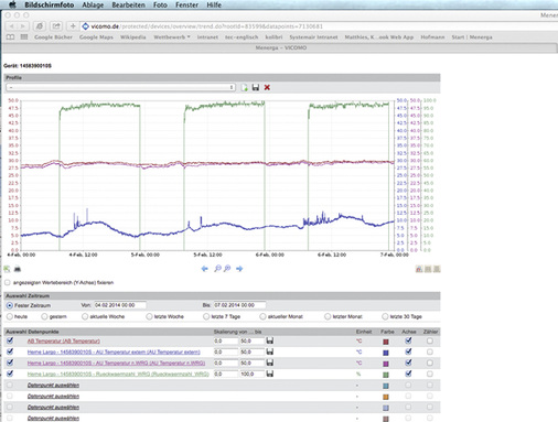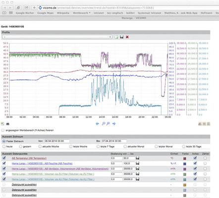 Das Monitoring-System Vicomo (virtual control + monitoring) vernetzt das in der Therme Lago vorhandene Menerga-System mit dem Kundendienst und eröffnet darüber hinaus viele Möglichkeiten zur Analyse von Systemkennzahlen. Auf dem BacNet-Standard basierend, nimmt vicomo die Informationen der wichtigsten Systemkomponenten auf und legt sie in einer Datenbank ab.