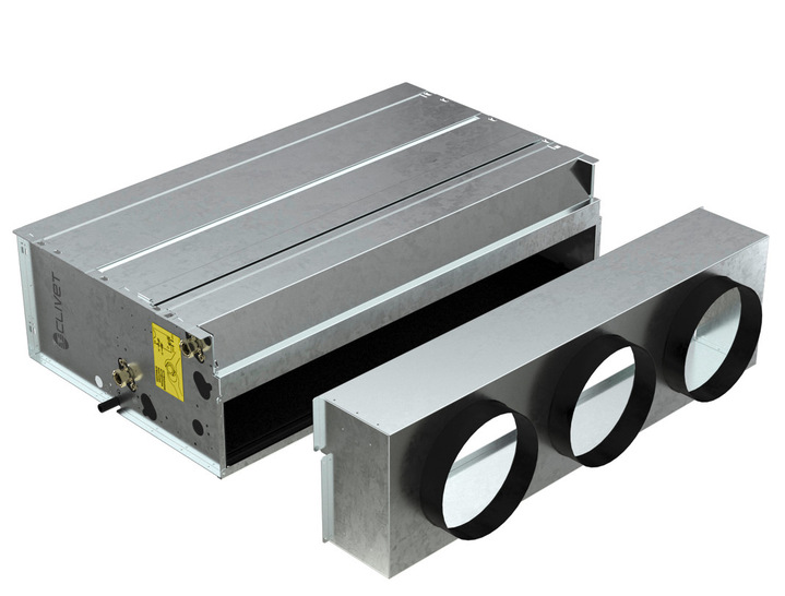 Clivet bietet mit der Serie Larice kanalisierbare Gebläsekonvektoren für die Installation in Zwischendecken an. Die vier Modelle DUA-M1, DUE-M1, DUA-H1 und DUE-H1 verfügen über eine Bauhöhe ab 248 mm. Ein bürstenloser Motor ermöglicht einen Betrieb ab 27 dB(A) und soll Energieeinsparungen von bis zu 50 % im Vergleich zu konventionellen Antrieben erreichen. Die Geräte sind als 2- oder 4-Rohr-Ausführung erhältlich, was die gleichzeitige Versorgung verschiedener Zonen mit Warm- und Kaltluft erlaubt. Es gibt Ausführungen mit mittlerem statischem Druck bis 80 Pa für Anwendungen wie Hotelzimmer oder Einzelhandel sowie Versionen mit hohem statischem Druck bis 250 Pa für größere Umgebungen wie Sportanlagen oder Gewerbebereiche. Zur Vereinfachung der Installation kann der Wärmetauscher gedreht werden, um die Position der Wasseranschlüsse ohne Änderung der Verkabelung anzupassen. Die Gebläsekonvektoren sind über einen integrierten Modbus-Port mit Gebäudeleittechniksystemen von Drittanbietern sowie mit dem System Clivetcontrol 4 Nrg kompatibel. Ein optionaler Wi-Fi-Thermostat (Hid-Tifx) erlaubt die Fernsteuerung per App (Clivet Home Connect).