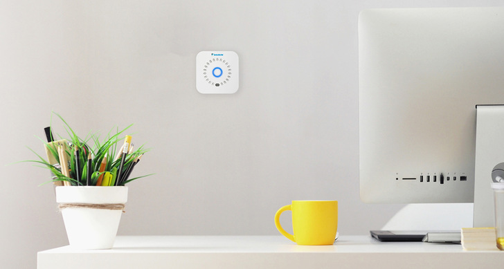 Als eigenständiges, kompaktes Gerät (Maße: 85 x 85 x 60 mm) lässt sich der IAQ-Sensor auf jeder ebenen Fläche aufstellen oder an der Wand montieren. Die Einrichtung und Konfiguration über die AirSense App dauert wenige Minuten. Je nach Örtlichkeit kann der Sensor eine Raumgröße mit einer freien Fläche von etwa 200 m² erfassen, bei verwinkelten Räumen und in Räumen, in denen viel gesprochen wird, reduziert sich die Fläche entsprechend. Mit seinen zwölf integrierten Sensoren überwacht er insgesamt 15 verschiedene Qualitätsparameter der Raumluft, die sich auf das Wohlbefinden der Menschen in einem Raum auswirken können. Zu diesen Parametern zählen zum Beispiel CO₂-Gehalt, Luftfeuchtigkeit, Luftqualität, Temperatur, Feinstaub, aber auch Umgebungslicht, Luftdruck und Elektrosmog. Werden Schwellenwerte dieser Parameter überschritten, sendet das System eine Warnmeldung und entsprechende Maßnahmen für eine saubere, frische Luft können eingeleitet werden.