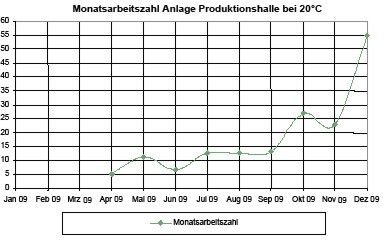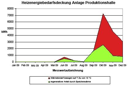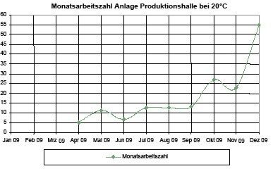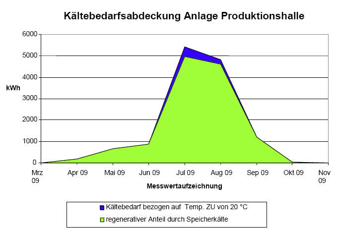 Im gesamten Betriebszeitraum 2009 arbeitete die Schotterspeicheranlage hoch- effizient und erwirtschaftete damit eine energetische Einsparung von 18,9 MWh thermischer Nutzenergie. Dem steht ein Mehraufwand von 1 415 kWh elektrischer Energie gegenüber. Die realistische Jahresarbeitszahl des Projektes, welche sich aus der jährlich eingesparten thermischen Energiemenge und der jährlich zusätzlich aufgewendeten elektrischen Energiemenge zusammensetzt, ergibt in diesem Projekt einen Wert von 13,3. Das heißt, dass im gesamten Betrachtungszeitraum 13,3-mal mehr thermische Energie gewonnen werden konnte, als zusätzliche elektrische Energie aufgewendet werden musste. Auch das beweist einmal mehr den effektiven, ökonomisch wirtschaftlich und ökologisch sinnvollen Einsatz von Schotterspeicheranlagen bei der Konditionierung von Außenluft.