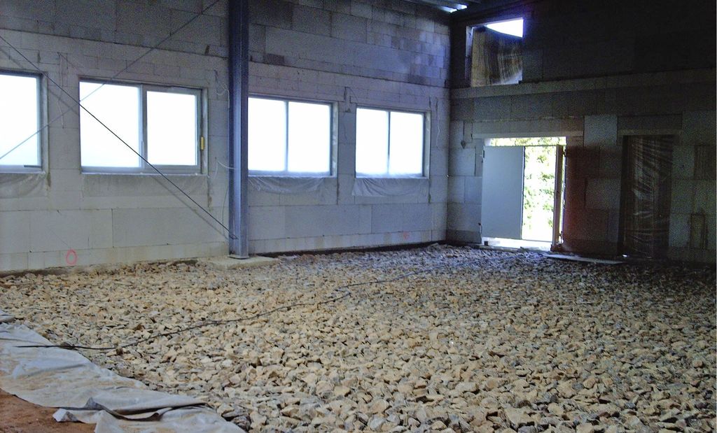 Die Konzeption, Planung und Errichtung der luftdurchströmten Schotterschüttung erfolgte im Zeitraum 2007/2008 und ist aus Platzgründen unterhalb der Bodenplatte der neu zu bauenden Produktionshalle eines mittelständigen Unternehmens in Mittelsachsen angeordnet. Der luftdurchströmte Schotterspeicher soll der Raumkonditionierung insbesondere in der Sommerperiode dienen und ist somit in das Gesamtklimatisierungsregime der Werkhalle eingebunden.