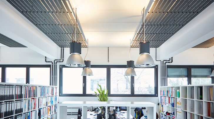 Das Heiz- und Kühlsegel der Baureihe Coolform sind unter anderem in Büro- und Verwaltungsgebäuden, Ausstellungsräumen und Museen, auch in Laboren, Technikräumen und Werkstätten sowie Industriehallen aller Art einsetzbar und entstehen in einer CO2-neutralen Fertigung. Die Installation ist frei hängend möglich oder integriert als Kühlinsel in beliebig abgehängte Deckensysteme. Das Heiz- und Kühlsegel heizt und kühlt Räume mittels Strahlung – und das ohne Einsatz von Ventilatoren. Es ist wartungsfrei bei gleichzeitig hoher Lebensdauer. Basis ist ein Register aus Stahlrohren, durch die je nach Bedarf warmes oder kaltes Wasser zirkuliert. Die Sichtseite der Module bietet Möglichkeiten der Deckengestaltung, da sie über keinerlei sichtbare Befestigungs- und Rahmenteile verfügt, dafür jedoch über Möglichkeiten der Integration von Luftdurchlässen und Sprinklern.