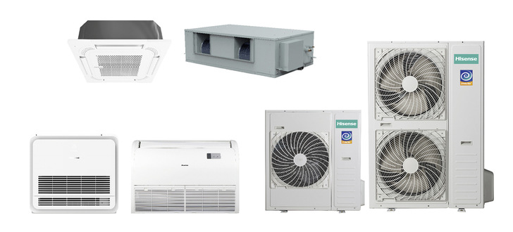 Die Systeme der Hisense PAC+ Geräteserie sind für den Einsatz in kommerziellen Objekten konzipiert. Sie sind mit Leistungen von 4 bis 25 kW im Kühlen und 4,5 bis 27 kW im Heizen verfügbar. Der Einsatzbereich liegt im Kühlbetrieb von -15 bis +52 °C, im Heizbetrieb von -20 bis +24 °C. Kanalgeräte sind mit Kühlleistungen von 20 oder 25 kW und einer externen statischen Pressung von bis zu 250 Pa erhältlich. Möglich sind Simultanbetrieb mit bis zu vier Inneneinheiten an einer Außeneinheit, Redundanzbetrieb mit Grundlastumschaltung durch den Einsatz der Steuereinheiten und Schnittstellen für die Integration in bauseitige BMS-Systeme.