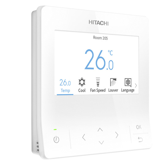 Die kabelgebundene Fernbedienung bringt ein Upgrade in die Systemregelung mit sich, mit dessen Hilfe der Benutzerkomfort anpassbar ist. Dazu gehören unter anderem die Aktivierung der „GentleCool“ - Funktion, die die kalte Zugluft durch Begrenzung der Zulufttemperatur verhindert. Für eine kurzfristig höhere Leistung hilft die „AutoBoost“- Funktion weiter und der leistungsstarke Betrieb wird gestartet. Durch die Integration verständlicher Piktogramme, übersichtlicher Diagramme und anpassbarer Farben werden zahlreiche Funktionen visualisiert und gesteuert. Sechs Tasten und der Bildschirm ermöglichen den Benutzern die Navigation durch mehr als 50 Funktionen. Das Servicepersonal hat einen Zugriff auf die Adressierung der Inneneinheiten, sodass Testlaufeinstellungen und Inbetriebnahmen durchgeführt werden können.