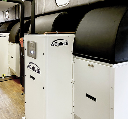 Zum Einsatz kamen weiterentwickelte MPE-Kaltwassersätze von Galletti, die kompakt und für Kanalanschluss konzipiert sind. Zudem sind sie mit Radialventilatoren ausgestattet, mit deren Hilfe es möglich ist, einen nutzbaren statischen Druck von bis zu 300 Pa zu erreichen. Die Geräte sind mit einem Luftaustritt mit vertikaler oder horizontaler Luftführung verfügbar, was bei diesem Projekt den Übergang zum Kanalsystem erheblich erleichterte. Die Vielfalt von Leistungsstufen bei der Baureihe MPED von 7 bis 76 kW ermöglichte eine optimale Auswahl der Maschinen mit passenden Dimensionen für den Archivraum.