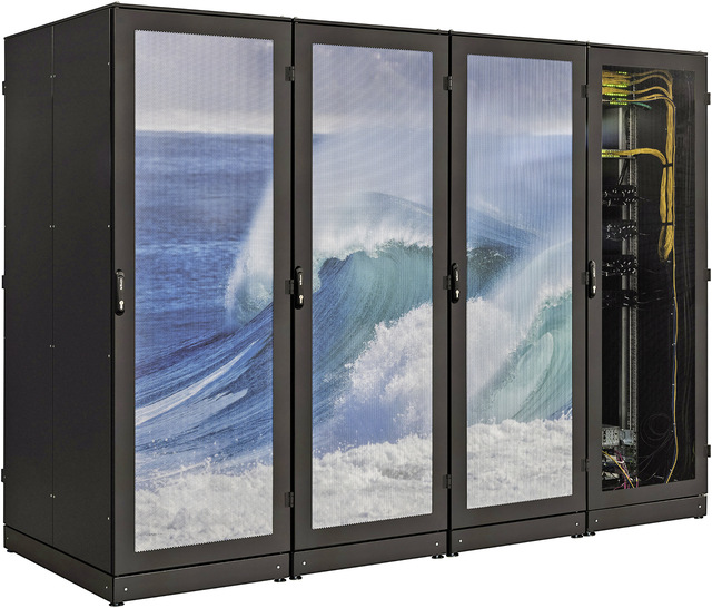 Das Ergebnis ist ein Rack, in dem sowohl Rohrleitungen für Wasser, ein Wärmeübertrager samt Pumpengruppe als auch ein Druckausgleichsgefäß integriert sind. Dadurch kann die Wärme aus dem Schrank abgeführt werden, ohne dass es mit dem Wasserkreislauf des Rechenzentrums in Berührung kommt.