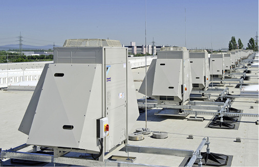 Die Baumaßnahmen begannen im Mai 2017, fertiggestellt wurde das Lager nach den neuesten Energie- und Designstandards von SEGRO Ende Mai 2018. Das fertige Gebäude zeichnet sich besonders durch alternative Materialien, eine saubere Energiebilanz und ein modernes Erscheinungsbild aus. Die anfangs leere Halle wurde erst nach der Entscheidung für den künftigen Mieter Rigterink mit passgenauer Klimatechnik ausgestattet, deren Einbau schnell und kostengünstig erfolgen musste. Hier fiel die Entscheidung auf Daikin. Die gesamte Halle wird nun mit 32 Split Klima-Geräten gekühlt und beheizt. Die Außengeräte der Reihe RZQ250C sind mit je einem Innengerät aus der Serie FDQ250B verbunden und bringen so eine hohe Leistung für groß geschnittene Räume. Die Kühlleistung pro Gerät beträgt 24,10 kW, die Heizleistung liegt bei 26,40 kW. Theoretisch erlaubt jedes der Systeme die Verbindung mit bis zu vier Innengeräten. In der Logistikhalle wurde ein Innengerät pro Außengerät installiert. Die Rohrleitungslänge beträgt pro Gerät nicht mehr als 7 m. Die Anlagen laufen mit dem Kältemittel R410A.