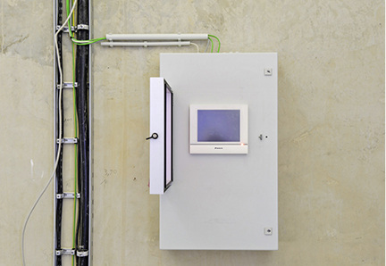 Die Lagerung der Ware in bis zu zehn Metern Höhe macht eine konstante Temperatur in der kompletten Halle erforderlich. Dieser Anforderung werden zwei Raumfühler pro Innengerät gerecht, die auf unterschiedlichen Höhen installiert sind. Insgesamt sind es 64 Fühler, über die die beiden Hallenteile geregelt und gesteuert werden. Sie sorgen vollautomatisch dafür, dass in jeder Höhe die gleiche Temperatur herrscht. Die WAGO Anbindung ermöglicht den Anschluss von zwei Außenfühlern, die die Außentemperaturen für die Umschaltung zwischen Heiz- und Kühlbetrieb erfassen.